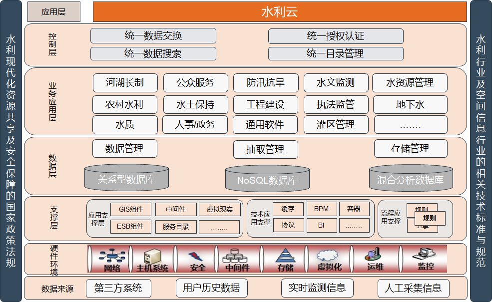 为全面提升水利信息资源共享和水利应用协同智慧的能力,推动“数字水利”向“水利云”的转变,从水利大数据全生命周期管理和应用的需求入手,顺山水利云将水利的各类算法、产品软件、硬件、网络等资源统一起来,实现数据的计算、储存、处理和共享的托管,基于云计算技术,建立基础设施云、数据云、应用服务云、云资源管理平台,实现基于水利云的信息资源的整合、共享,支撑省一级部署(省级)、四级应用(省、市、县、乡级)的水利信息资源整合共享模式,为水利信息资源整合共享建设提供顶层设计和解决方案。
